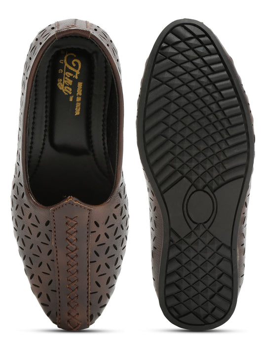 Tiny Bugs Boys Ethnic Wear Mojaris - Brown