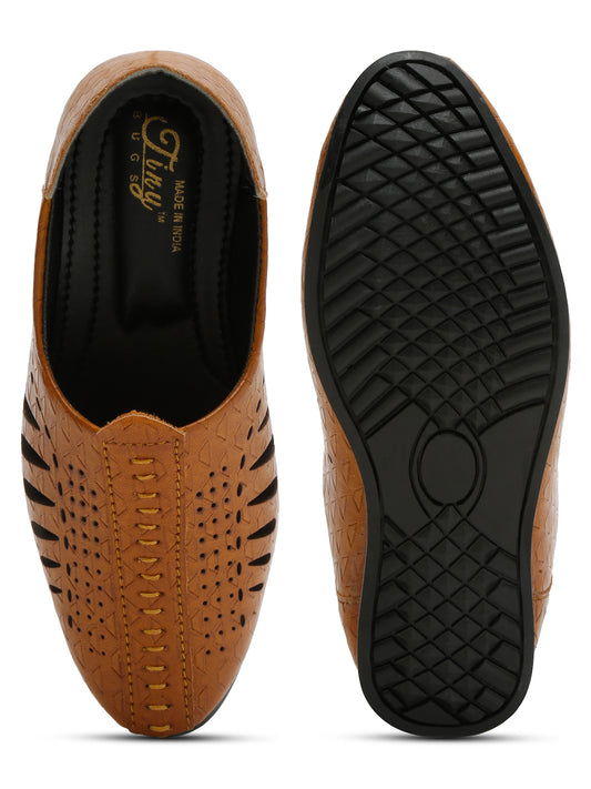 Tiny Bugs Boys Ethnic Wear Mojaris - Tan