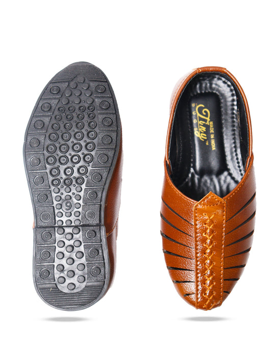 Tiny Bugs Boys Ethnic Wear Mojaris - Tan
