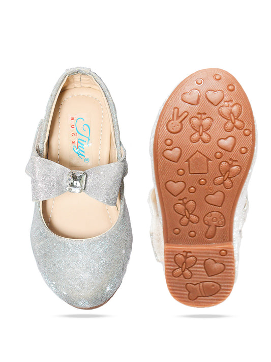 Tiny Bugs Girls Bow Embellished Ballerinas - Silver