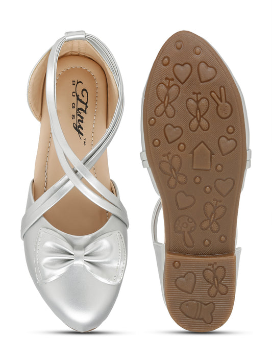 Tiny Bugs Girls Bow Embellished Ballerinas - Silver