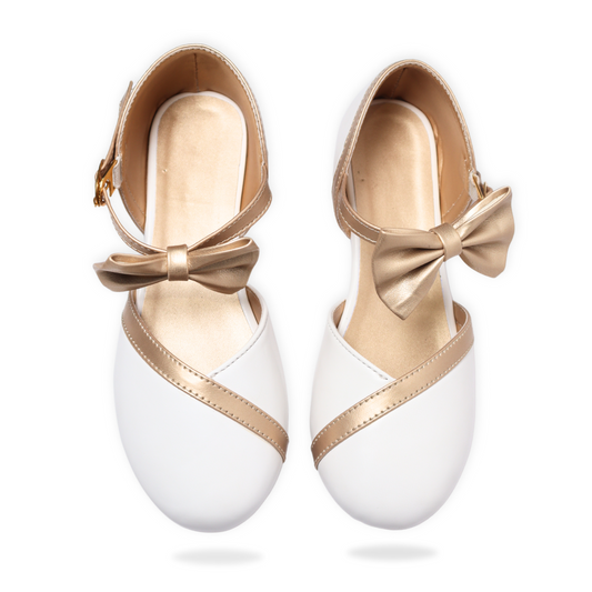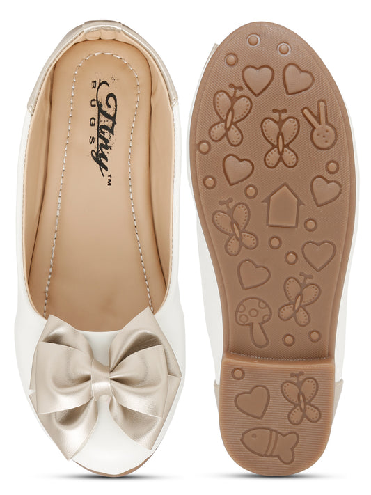 Tiny Bugs Girls Bow Embellished Ballerinas - White & Gold