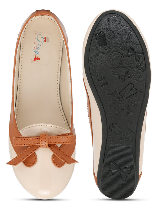 Tiny Bugs Girls Bow Applique Ballerinas - Beige & Brown