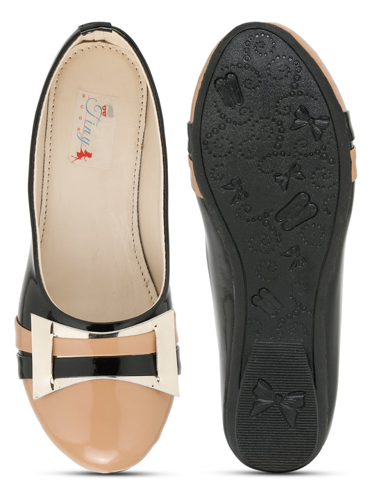 Tiny Bugs Girls Buckle Detailed Ballerinas - Beige & Black