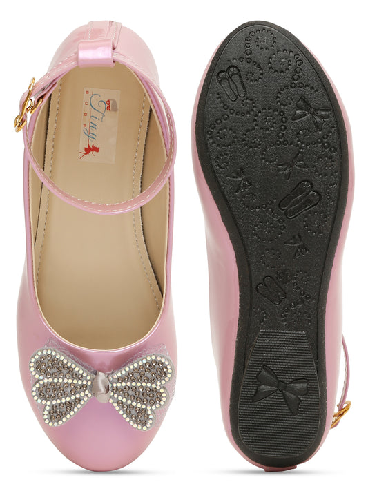 Tiny Bugs Girls Bow Embellished Ballerinas - Pink