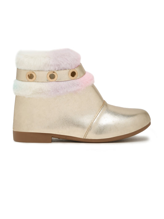 Tiny Bugs Girls Party Wear Fur Boots - Gold