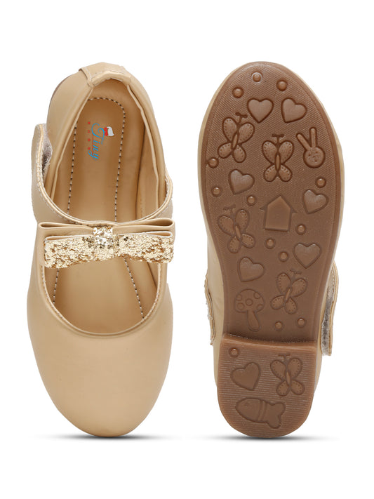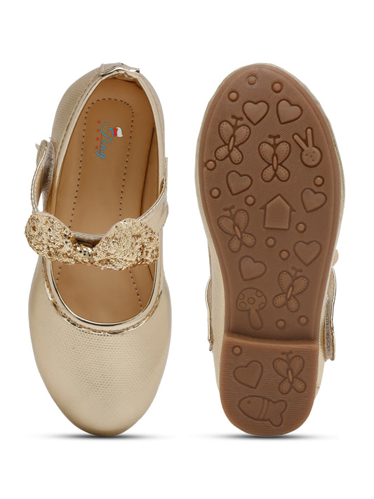 Tiny Bugs Girls Bow Applique Ballerinas - Gold