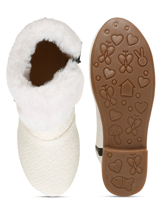Tiny Bugs Girls Party Wear Embellished Fur Boots - White