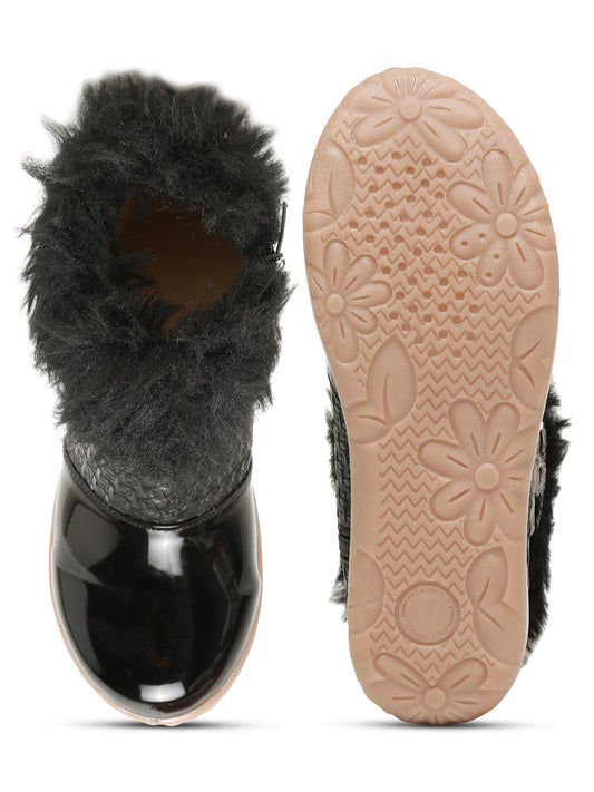 Tiny Bugs Girls Party Wear Embellished Fur Boots - Black