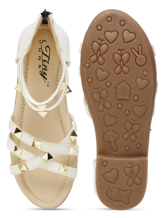 Tiny Bugs Girls Party Wear Embellished Ballerinas - White